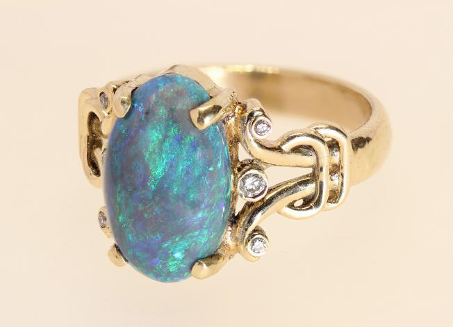 Oval black opal with diamonds
