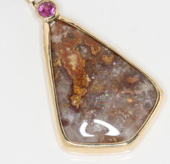 Hyalite with play of color zoom view